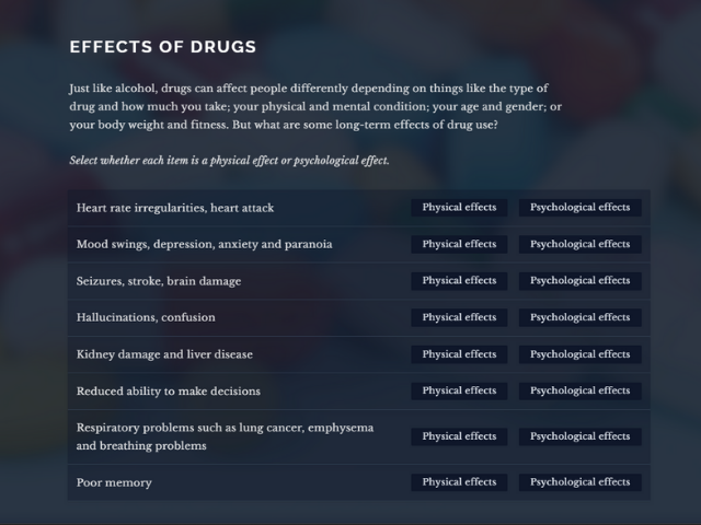 This eLearning course aims to warn employees of the dangers associated with drug and alcohol abuse and highlights general rules and policies companies often have in place.