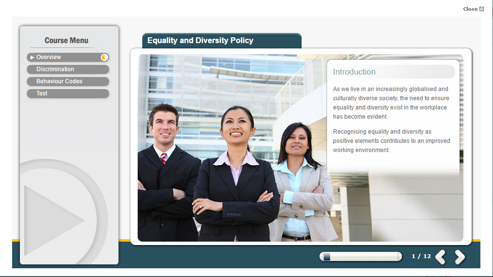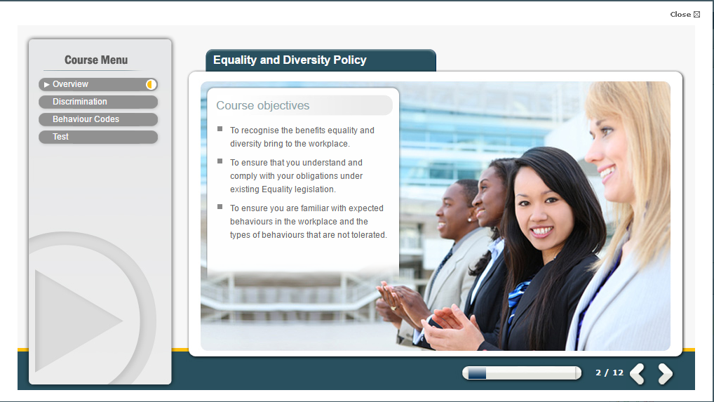 The course helps to promote a culture of workplace equality and diversity in which these behaviours are unacceptable, where individuals can feel confident to bring complaints without fear of reprisal and where complaints are taken seriously and dealt with promptly.