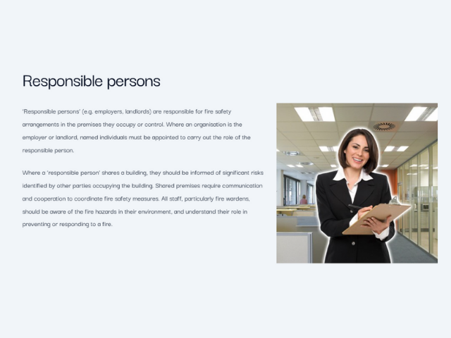 The Regulatory Reform (Fire Safety) Order 2005, states that the employer or owner, as the ‘responsible’ person, has overall responsibility for fire safety in their premises. However, they may appoint ‘competent’ persons such as Fire Wardens to help ensure adequate fire safety procedures are used and adhered to.