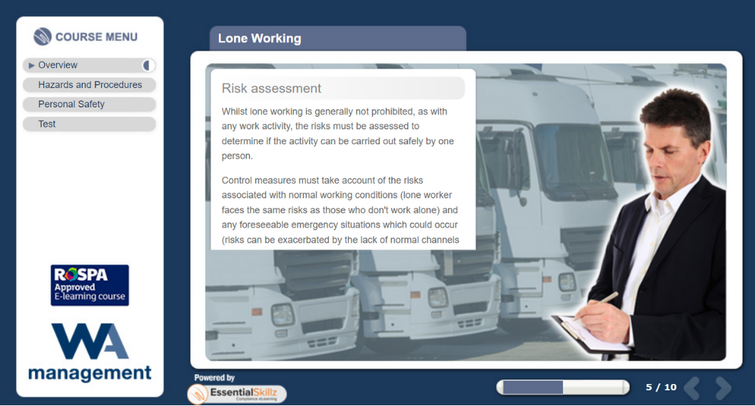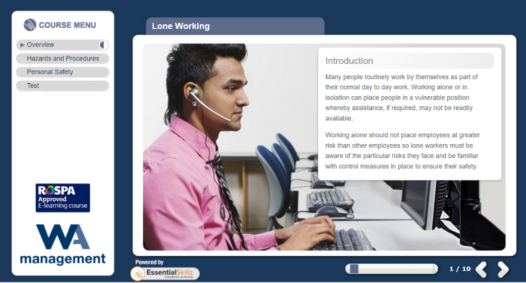 This Lone Working eLearning course is designed to provide those who work alone with the appropriate information and training to reduce the hazards of lone working and ensure they are familiar with control procedures in place.