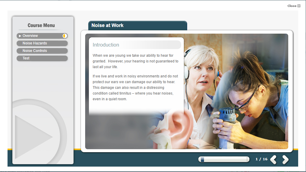 Hearing loss caused by workplace noise is preventable. However, once hearing has gone it does not come back. This Noise at Work eLearning Course provides: