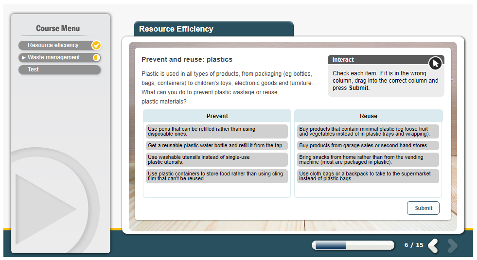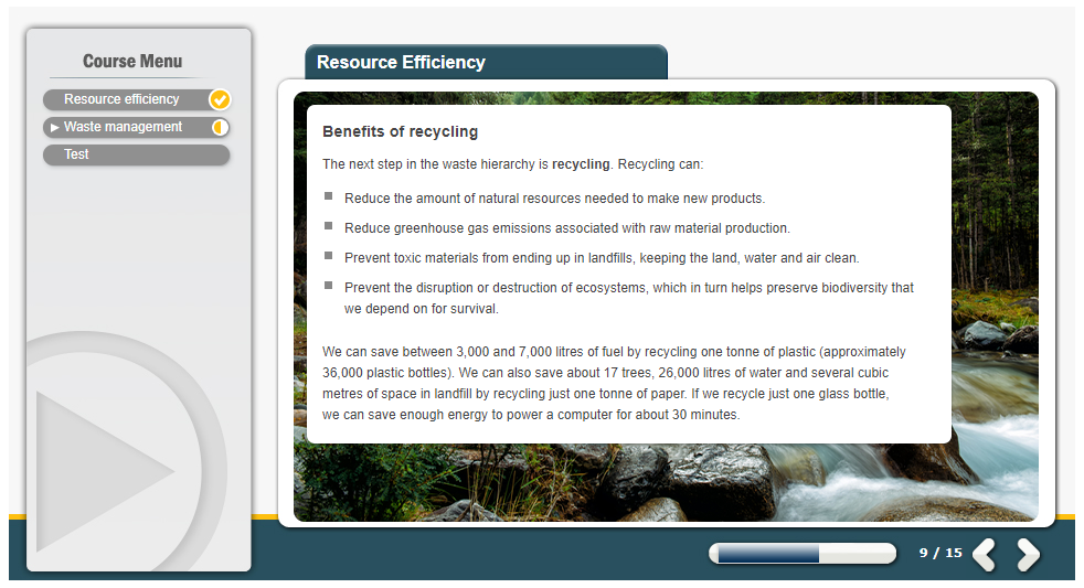 This online Resource Efficiency course is ideal for anyone who is interested in finding simple yet achievable ways to help the environment through waste management and efficient energy use. It would also be beneficial for organisations that would like advice on efficient use of resources in business and how to make their organisations more sustainable. If you are interested in this, check out our Environmental Awareness Online Training Course as well!
