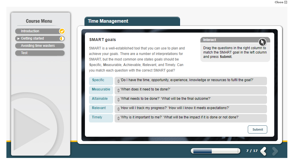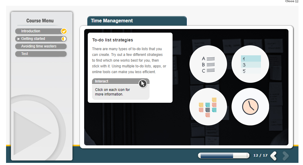 This online Time Management training course provides information on how to manage your time so you can achieve a better work-life balance. The time management techniques in this course range from getting organised, setting goals, prioritising, making to-do lists, creating a schedule and avoiding common time wasters.