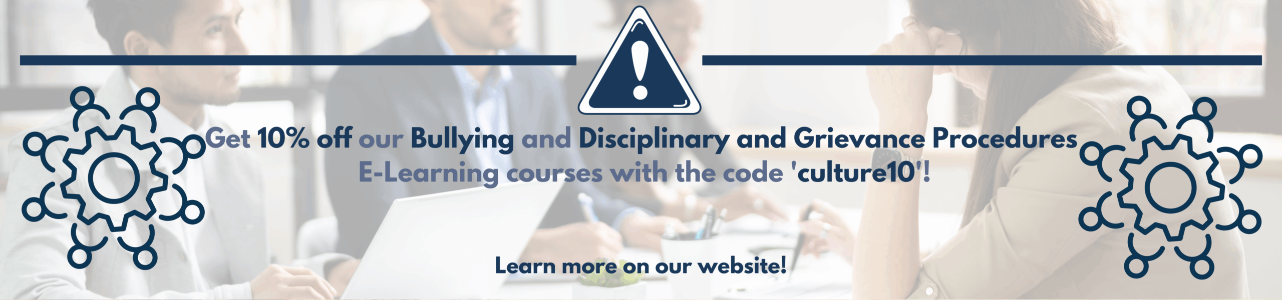 Bullying in the Workplace and Disciplinary and Grievance Procedures training courses are essential tools in improving workplace culture and employee wellbeing. Make sure you don’t miss out on our 10% off deal on these courses, available until the end of November. Simply enter the code ‘culture10’ at checkout to save!