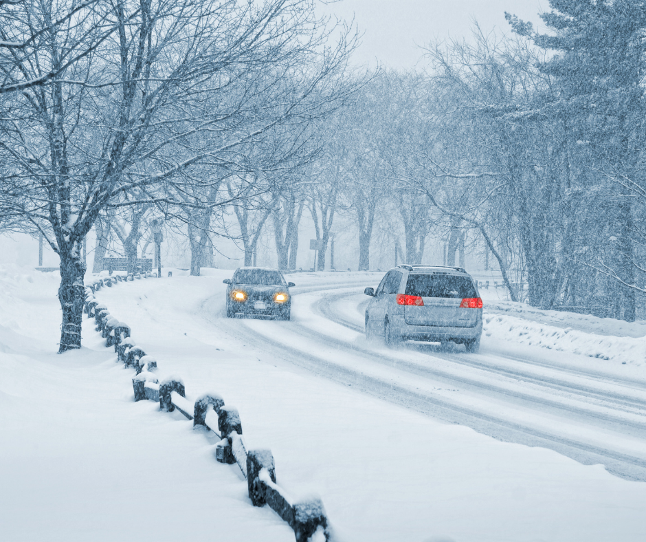 When driving on snow or ice your stopping time increases significantly – make sure you leave plenty of space between your vehicle and the one in front of you to make sure you have enough time to stop if needed.